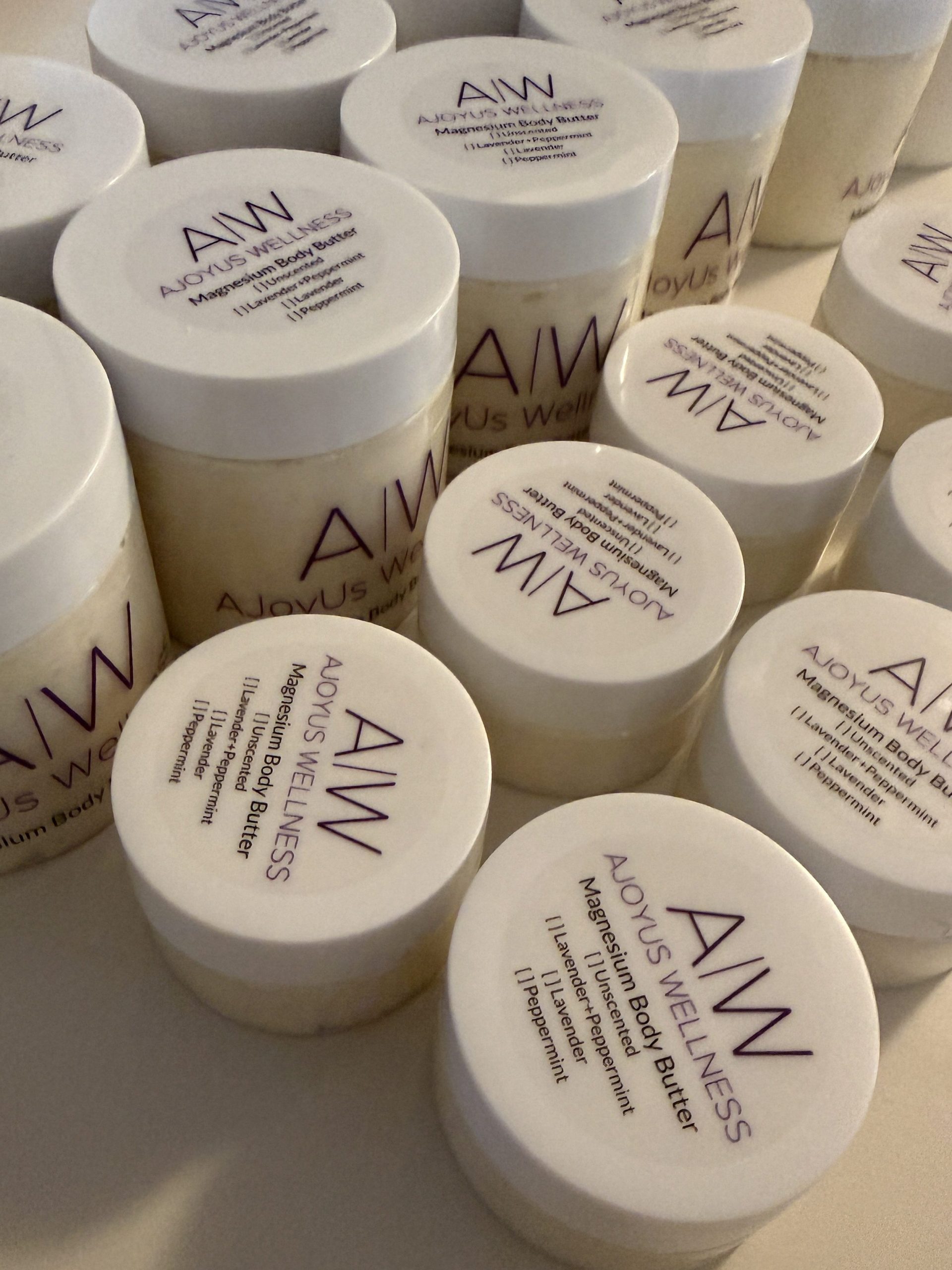 Our small-batch magnesium body butter blends the restorative power of magnesium with the soothing properties of pure essential oils. Depending on your choice of body butter — it may be infused with peppermint for a refreshing, cooling sensation and lavender for gentle, calming relief, this luxurious butter nourishes skin while supporting relaxation and recovery.